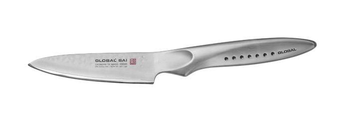 1) Stylová, ergonomická rukojeť - tento zbrusu nový design rukojeti , s využitím zkušeností Global, byl navržen na základě konzultací s mnoha kuchaři a odborníky, aby nože umožňovali maximální pohodlí a bezpečnost při jejich používání . Řada Global SAI má 7 teček podél rukojeti, místo plně tečkované rukojeti, jako má klasický nůž Global. Tyto tečky reprezentují tradiční Bushido cestu japonského bojovníka, která symbolizuje 7 morálních pravidel samuraje.