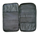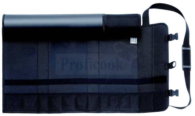 popis: Rolovací 12-dílné textilní pouzdro je vyrobeno z pevného materiálu odolného proti proříznutí a je plně omyvatelné. Je uzpůsobeno pro 11 nožů, ocílek či nástrojů s maximální délkou čepele do 32 cm. Dále obsahuje prostor pro knihy, tužky a další potřebné materiály.